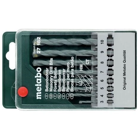 Foret à béton pour perceuses rotatives et à percussion selon DIN 8039, rainure angulaire fraisée, entrée en spirale droite, longue durée de vie, résistant à la chaleur, plaque métallique dure à 130 °, lunette négative, modèle robuste, surface à grain sphérique. Convient pour percer dans le béton, la maçonnerie, la pierre naturelle. De 8 pièces, dans un étui en plastique: Ø 3 / 4 / 5 / 6 / 7 / 8 / 9 / 10mm. Foret à béton pour forets hélicoïdaux et à percussion selon DIN 8039, rainure angulaire fraisée, entrée en spirale droite, longue durée de vie, résistant à la chaleur, plaque métallique dure à 130 °, lunette négative, modèle robuste?. Surface: boule. Convient pour percer dans le béton, la maçonnerie, la pierre naturelle.