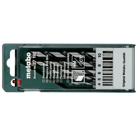5 pièces, dans un étui en plastique. Ø 4 / 5 / 6 / 8 / 10mm. Perceuses pour pierre pour perceuses sans percussion. Modèle de fraisage, plaque métallique dure à 130 °. Modèle robuste. Convient pour percer des briques, de la maçonnerie, de la pierre naturelle, etc.