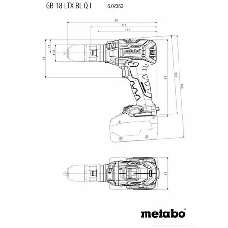 Poids (avec batterie) 2,2 kg Métabotropique batterie 18V Taps GB 18 LTX BL Q I