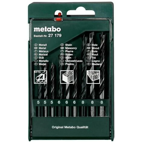 - Forets à pierre, bois et HSS-R, 9 pièces, dans un coffret en plastique