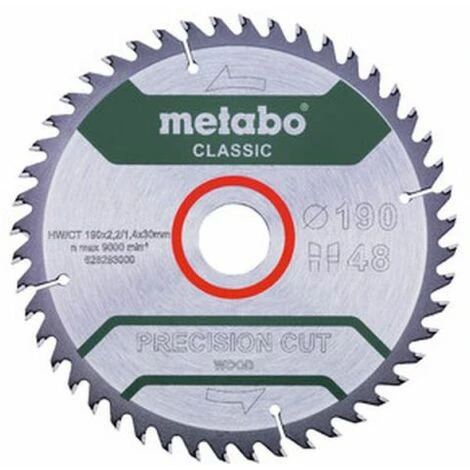 METABO Lame de scie « bois de précision – classique », 190×2,2/1,4×30 Z48 WZ 15° (628283000)