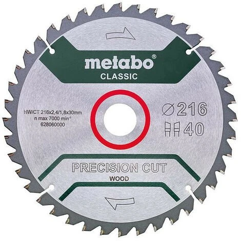 Metabo – Lame de scie circulaire «precision cut wood» classic 216×2.4×30 mm 40 dents WZ