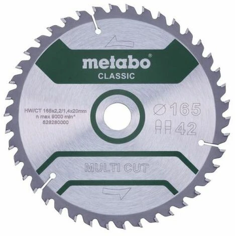 METABO Lame de scie « coupe multiple – classique », 165×2,2/1,4×20 Z42 FZ/TZ 5° (628280000)