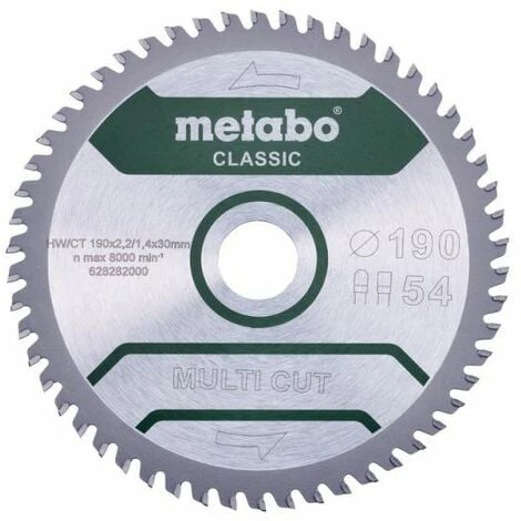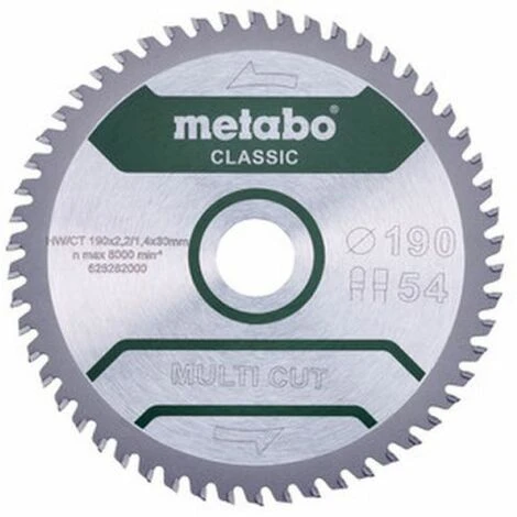 METABO Lame de scie « coupe multiple – classique », 190×2,2/1,4×30 Z54 FZ/TZ 5° (628282000)