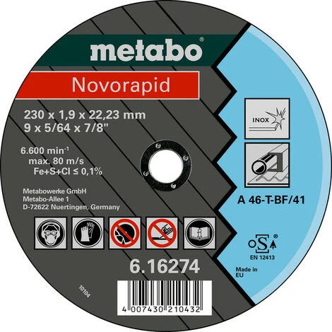 Meule de tronçonnage fine pour le traitement de matériaux fins inoxydables, tels que les tuyaux, les tôles, les profilés, les fils métalliques, etc., ainsi que pour le travail du métal en général
