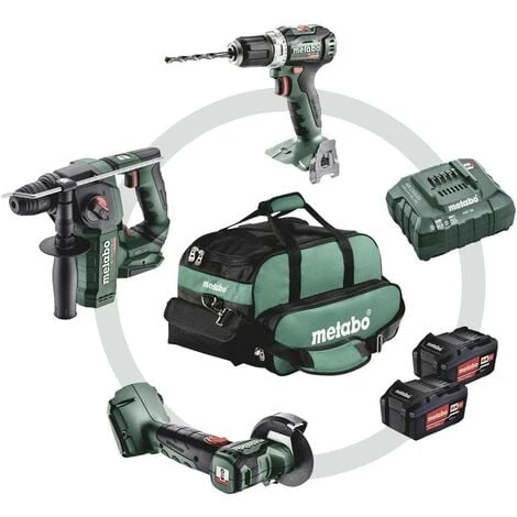 Perceuse-visseuse sans fil BS 18 L BL : perceuse-visseuse Brushless extrêmement compacte pour les applications les plus variées. Avec crochet de ceinture et support pour embouts pouvant être fixé à gauche ou à droite. Marteau perforateur sans fil BH 18 LTX BL 16 : marteau sans fil très léger et compact avec moteur Brushless pour percer sans se fatiguer dans toutes les positions de travail. Capacité de perçage, efficacité et durée de vie maximales grâce à la technologie Brushless et au mécanisme de frappe haute performance. Marteau perforateur avec 2 fonctions : perçage à percussion et perçage. Metabo VibraTech (MVT) : pour travailler en continu sans se fatiguer et en protégeant sa santé. Meuleuse d’angle sans fil CC 18 LTX BL : outil très maniable avec un confort de travail maximal pour de nombreuses applications. Toujours les bons accessoires : grand choix de meules pour travailler le métal, le bois, la pierre, le carrelage et le plastique. Moteur Brushless puissant pour une avance rapide et une efficacité maximale.