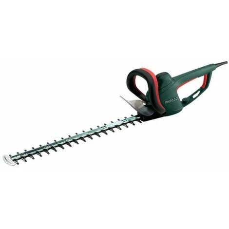 Système de poignée Metabo breveté avec interrupteur supplémentaire pour jusqu’à 50 % de portée en plusFaible poids pour un travail sans effortArrêt mécanique rapide du couteau breveté (en 0,05 seconde) pour plus de sécuritéCouteau avec géométrie spéciale pour une faible usure et donc une durée de vie 200 % plus longueCoupe nette grâce à dents de couteau rectifiées au diamant des deux côtés Angle de 30°Lame inférieure de sécurité pour une sécurité de travail élevée Débrayage de sécurité MetaboS-automatic:protège la lame et l’engrenage en cas de blocage par des corps étrangers.Lames de cisaillement contrarotativespour une douceur de fonctionnement optimaleAcheminement convivial de l’air d’échappement de la machine dans toutes les situations de travail Facilitéd’entretien grâce à la trappe de remplacement de câble La décharge de traction du câble empêche le débranchement involontaire du connecteur de câble La protection contre les chocsavec dérivation protège les utilisateurs et les engrenages contre les rebonds , conteneur de stockage
